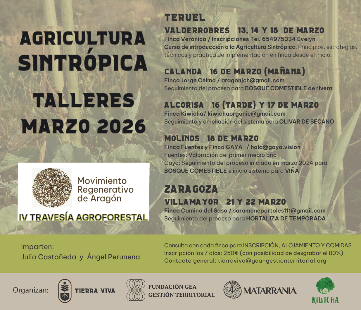 2026 Marzo 13, 14, y 15 | Agricultura Sintrópica March 13, 14, and 15 | Agriculture Marzo 13, 14, y 15 | Curso de Introducción a la Agricultura Sintrópica March 13, 14, and 15 | Introduction to Syntropic Agriculture Course 2025 27 y 29-30 Sep. / Octubre | Agricultura Sintrópica: Introducción y procesos en 4 fincas Sept. 27 and 29-30 / Oct. 1 | Syntropic Agriculture: Introduction and processes on 4 farms Junio 17, 18, 19 y 20 | II Seminario sobre Economía Consciente June 17, 18, 19 and 20 | 2nd Seminar on Conscious Economy Mayo 24 | Jornada Escuelas Rurales y Pedadogía Holística May 24 | Rural Schools and Holistic Pedagogy Meeting Abril 12 | Soberanía Energética April 12 | Energy sovereignty Marzo 14, 15 y 16 | Taller de Agricultura Sintrópica: 3 procesos en 3 fincas March 14, 15 and 16 | Syntropic Agriculture Workshop: 3 processes in 3 farms Marzo a Julio | Actividades March to Jule | Activities 2024 Septiembre del 14 al 17 | Taller de Agricultura Sintrópica September 14 to 17 | Syntropic Agriculture Workshop Junio 13 y 14 | 1er Seminario sobre Economía Consciente June 13 and 14 | 1st Seminar on Conscius Economy Junio 6, 7 y 8 | 1ª Jornadas sobre Resiliencia y Soberanía June 6, 7 and 8 | 1st Meeting on Resilience and Sovereignty Mayo 21 y 22 | Encuentro: Comunidades de consciencia May 21 and 22 | Gathering: Communities of consciousness Abril del 10 al 21 | Técnicas Tradicionales de Construcción April 10 to 21 | Traditional Construction Techniques Mazo del 22 al 31 | Introducción práctica a la permacultura y la agricultura sintrópica March 22 to 31 | Practical introduction to permaculture and syntropic agriculture Marzo – Junio | Actividades March – June | Activities TIERRA VIVAActividades – Activities